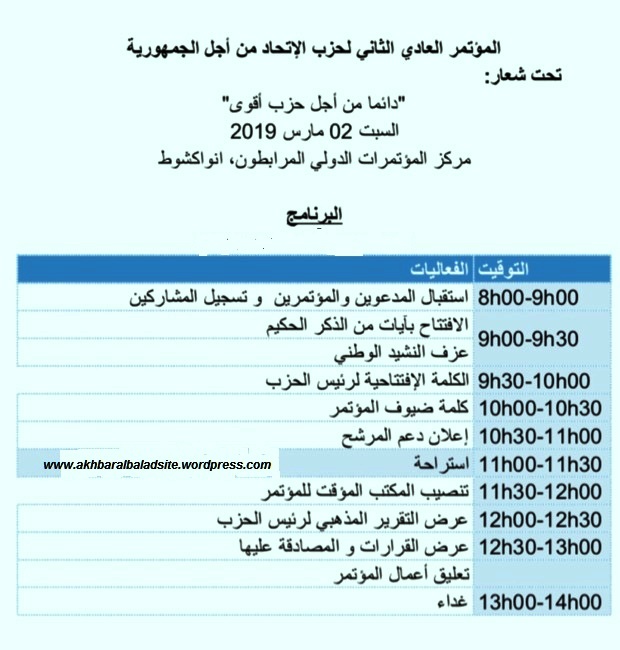 أخبار البلد / تشر برنامج المؤتمر الوطني لحزب الاتحاد من اجل الجمهورية الحاكم في موريتانيا.