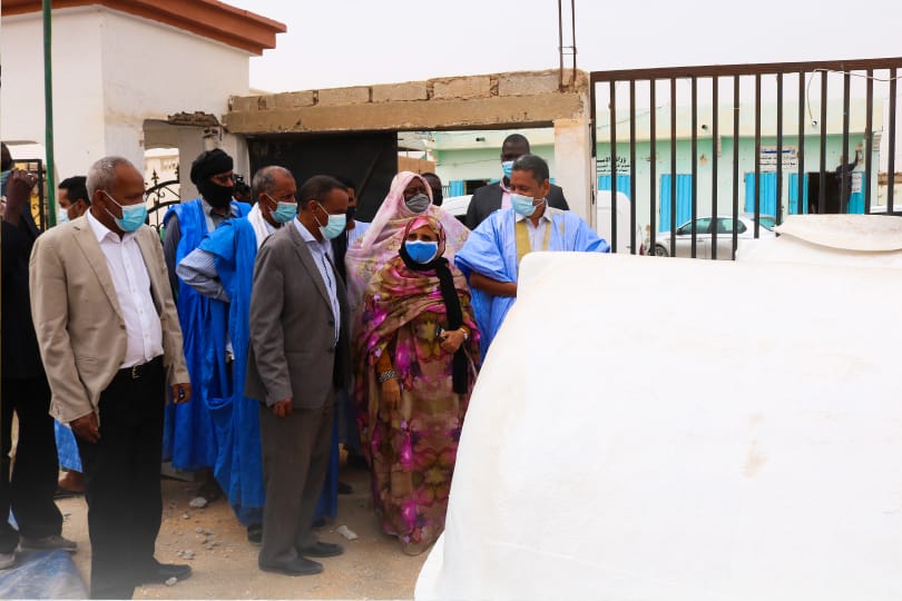 سلمت رئيسة جهة نواكشوط، السيدة فاطمة بنت عبد المالك، صباح اليوم الاثنين 18 يناير 2021، عشرة خزانات للمياه لعمدة بلدية توجنين.