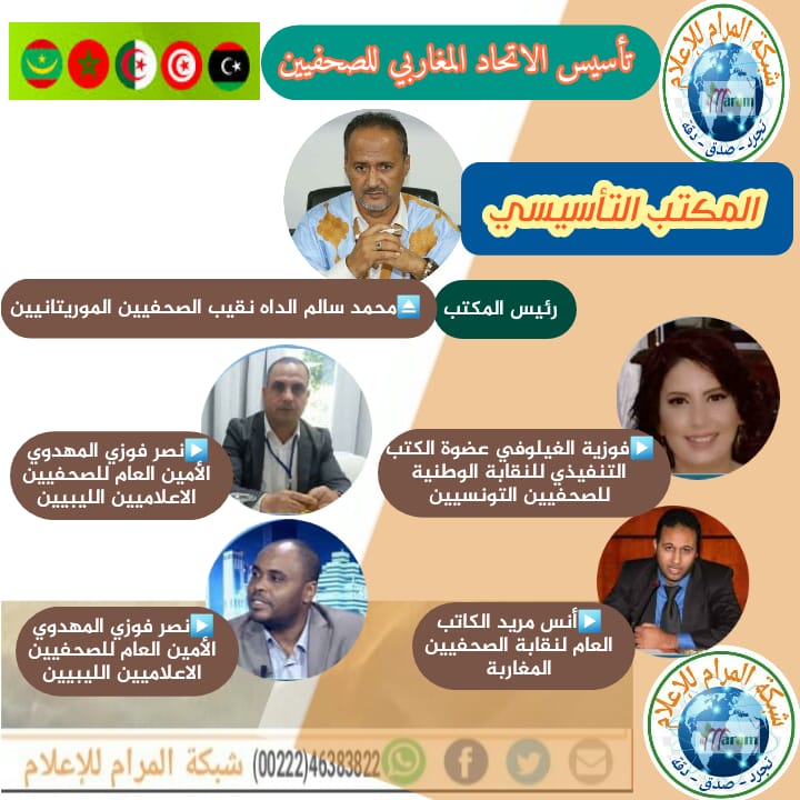 نعلن نحن الصحفيات والصحفيون فى دول المغرب العربي ومن مختلف المؤسسات الإعلامية المكتوبة والالكترونية والمرئية والمسموعة عن إطلاق أول اتحاد مغاربي للصحفيين .