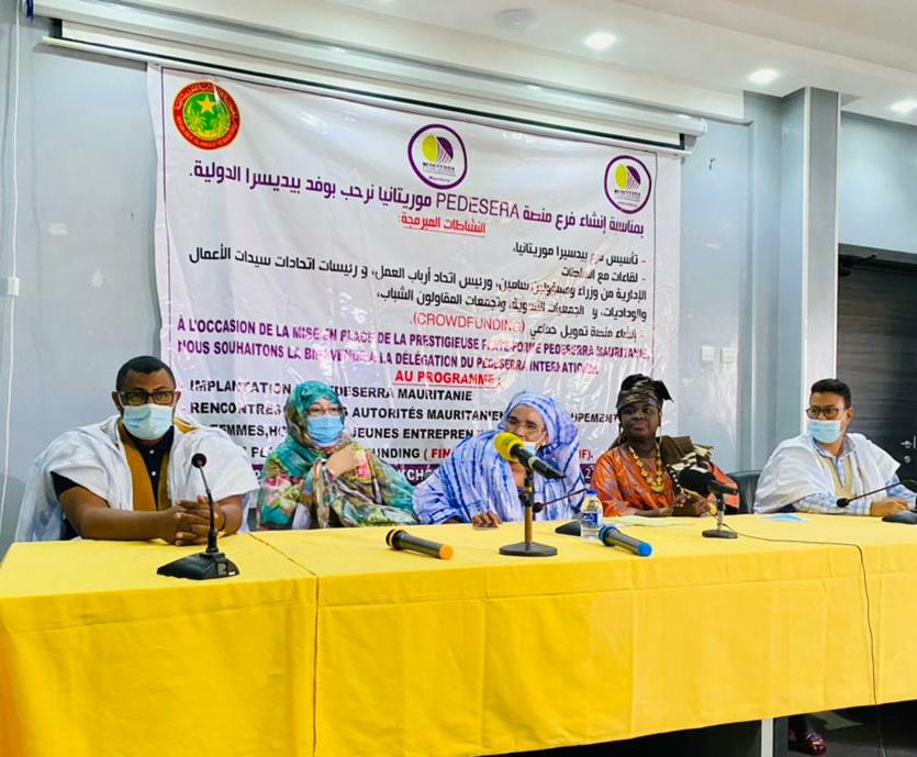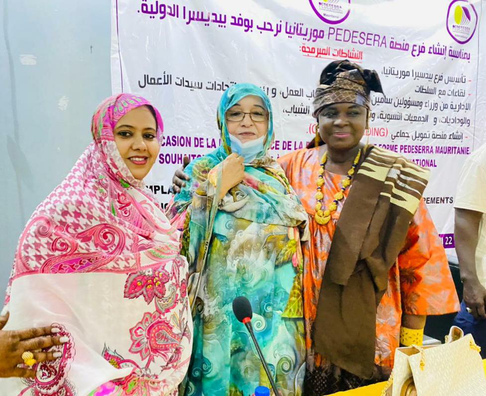 تكتمل فرحتي اليوم بعد عناء وجهد كبيرين بالإفراج عن فرع PEDESERRA/ موريتانيا بحضور القيادات الدولية لأحدث شبكة عالمية لتنظيم القطاع الغير مصنف والنهوض به، كما أعلن الفرع المحلي مفتوحا أمام جميع القيادات النسوية والشبابية والطاقات الحية في جميع مجالات التنمية والخلق والإبداع، للنهوض معا بالمبادرة الجادة في موريتانيا و جلب الاستثمار الذي يمكث في الأرض وينفع الناس.