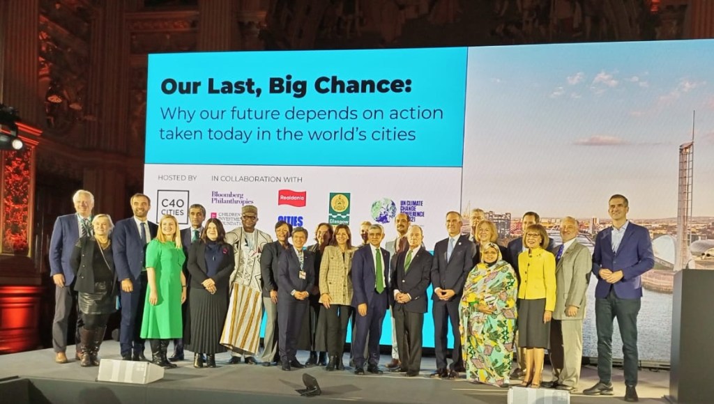 شاركت السيدة فاطمة بنت عبد المالك صباح أمس الثلاثاء 02 نوفمبر 2021 في مدينة غلاسغو الاسكتلندية في اجتماع  لمجموعة المدن قادة المناخ C40 Cities بحضور عشرات العمد ورؤساء المدن والميتروبول، من ضمنهم كلا من باريس، لندن، دكا، نيو اورلينز Nouvelle Orléans،  لوس آنجلوس، غلاسكو، واغادوغو، ستوكهولم، آتين، …