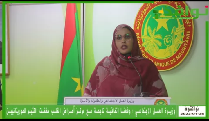 قالت وزيرة العمل الاجتماعي الناها بنت هارون إن قطاعها وقع اتفاقية مع مركز القلب كانت ناجحة وحققت الكثير من أماني الموريتانيين ، وتعالج بفضلها أكثر من مائتي مريض من الفئات الهشة .