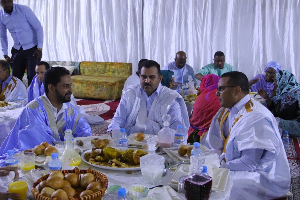 نواكشوط، الليلة البارحة 18 ابريل 2022 حفل إفطار على شرف ولاة وحكام وعمد نواكشوط و المستشارين الجهويين والمديرين الجهويين للتعليم والشؤون الإسلامية والأمن بالعاصمة، إضافة إلى عمال الجهة.