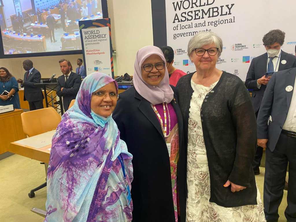 شاركت صباح اليوم الأربعاء 27 ابريل 2022 رئيسة جهة نواكشوط السيدة فاطمة عبد المالك، في أعمال الجمعية العالمية للحكومات المحلية والجهوية بمقر الأمم المتحدة بنيويورك، والتي تأتي في إطار تنفيذ الخطة الحضرية الجديدة من طرف الأمم المتحدة.