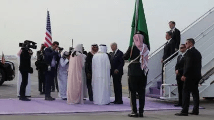 الرئيس الأمريكي جو بايدن يصل إلى مطار الملك عبد العزيز الدولي برفقة وزير الخارجية الأمريكي أنتوني بلينكين ، في جدة ، المملكة العربية السعودية- رويترز