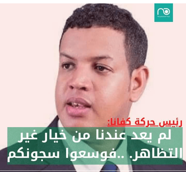 دعى رئيس حركة كفانا المعارضة يعقوب ولد احمد لمرابط الشعب الموريتاني والفاعلين المدنيين الى التظاهر السلمي للوقوف في وجه تغول النظام واستمراره في القرارت الطائشة التي تؤثر بشكل سلبي على حياة المواطنين و ظروفهم المعيشية الصعبة مشيرا إلى أنه لم يعد لديهم من خيار غير التظاهر