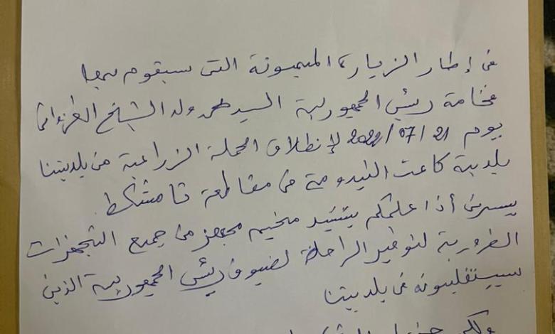 فيي إطار الاستعدادات الجارية لتحضير الزيارة التي سيقوم بها فخامة رئيس الجمهورية السيد محمد ولد الشيخ الغزواني للإشراف المباشر على طلاق الحملة الزراعية من مقاطعة تامشكط وبالتحديد من بلدية كاعت التيدومة “سد لكراير “.