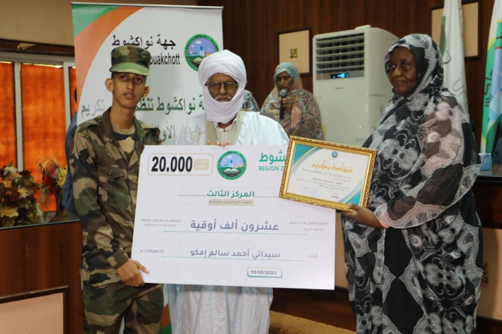نظمت جهة نواكشوط صباح اليوم الثلاثاء 16 أغشت 2022 حفلا تكريميا لصالح الطلاب المتفوقين في شهادة ختم الدروس الإعدادية وجميع شعب الباكلوريا.