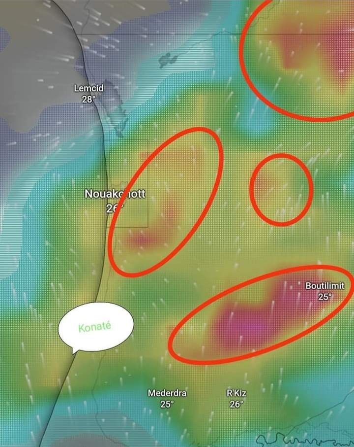 هذه المناطق من الترارزة و إنشيري وآدرار ولبراكنة يتوقع انها ستكون في قلب عاصفة الخميس والجمعة بحول الله وقوته ويتوقع أن امطارا مهمة ستصلها إن شاء الله.