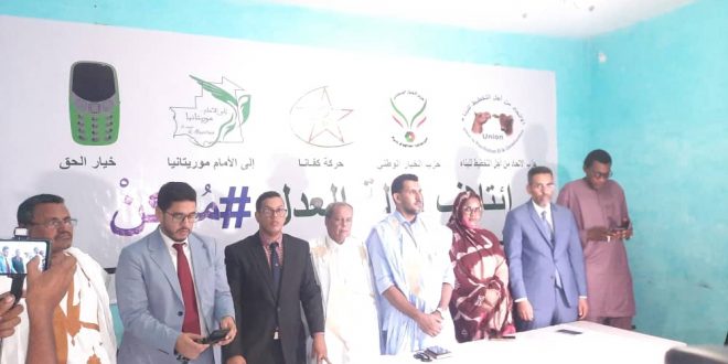 أعلن مساء اليوم في نواكشوط عن تشكيل  “ائتلاف دولة العدلممكن”، بحضور قادة التشكيلات المؤسسة. ويهدف الائتلاف السياسي إلى إرساء دولة العدل والقانون والمؤسسات التي تضمن ارساء الدين والهوية، واللحمة الوطنية.