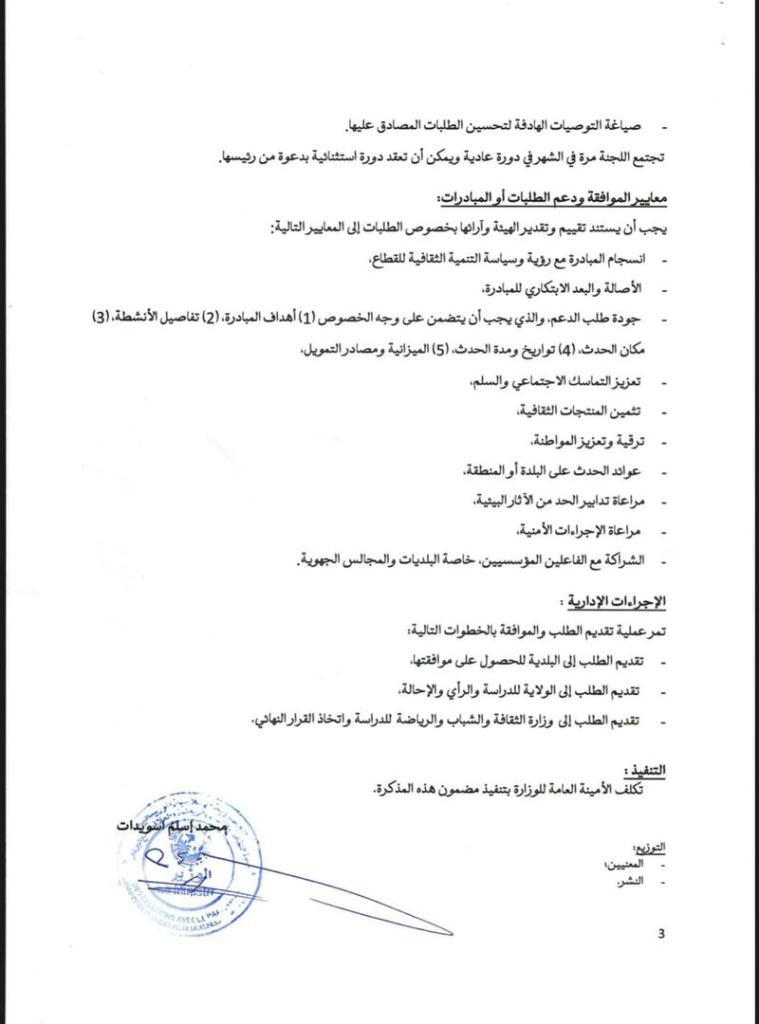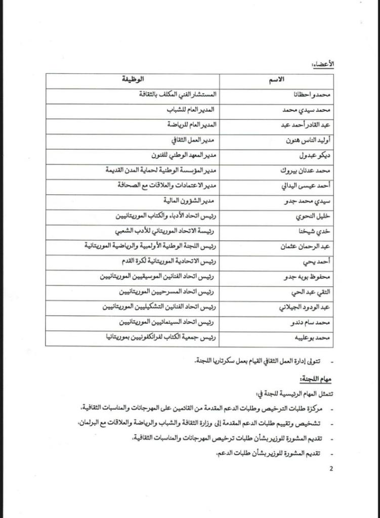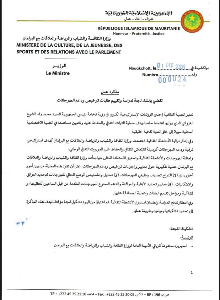 أعلنت وزارة الثقافة و الشباب و الرياضة و العلاقات مع البرلمان عن انشاء لجنة مؤقتة تعنى بدراسة و تقييم طلبات ترخيص و دعم المهرجانات .