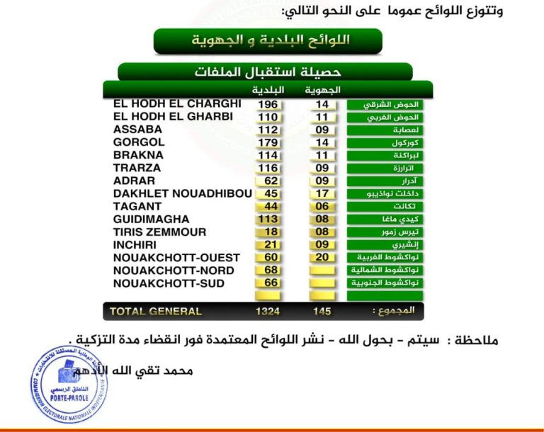 فيما وصل عدد اللوائح الجهوية 145 لائحة، وعدد اللوائح البلدية 1324 لائحة.