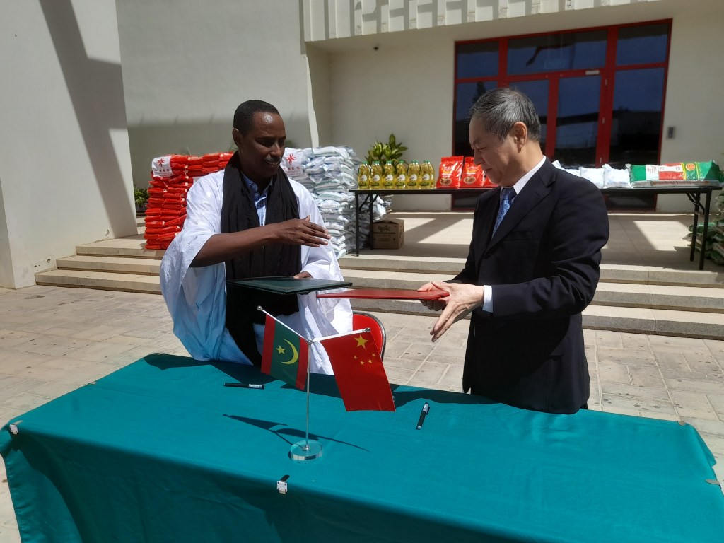 أخبار البلد – نواكشوط / سلمت السفارة الصينية  في العاصمة الموريتانية نواكشوط  ظهر اليوم الثلاثاء 02/04/2023 معونة غذائية  معتبرة ، وذلك لفائدة ساكنة قرية البربوشية التابعة لبلدية أكجرت بولاية الحوض الغربي . تمثلت المعونة المذكورة في عدد كبير من السلات الغذائية المختلفة ؛ شملت الأرز و السكر و الطحين و المكروني و زيت الطهي . و قد تم تسليم  هذه  المعونة في مباني السفارة الصينية من طرف الوزير المستشار بالسفارة للسيد براهيم ولد عبد الله ممثلا عن عمدة أكجرت ، و تبادل الطرفان بالمناسبة  كلمات الشكر و التقدير و الامتنان للتعاون المثمر بين الشعبين في كلتا الدولتين  ؛ الحمهورية الإسلامية الموريتانية  و جمهورية الصين الشعبية .