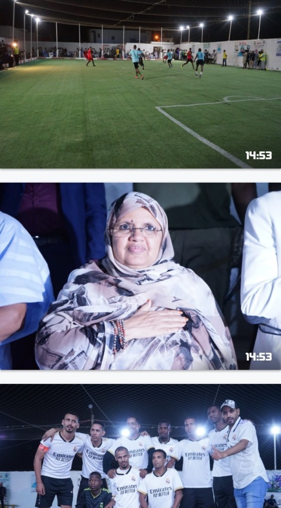 أشرفت رئيسة جهة نواكشوط السيدة فاطمة عبد المالك، الليلة البارحة على نهائي ثلاث بطولات لكرة القدم للصالات، التي تم تنظيمها من طرف الرابطة الشبابية لكرة الصالات برعاية جهة نواكشوط تحت شعار “لا للمخدرات”، وذلك بحضور عمدة توجونين، وعدد من المهتمين بالمجال الرياضي.وكانت نتائج البطولة على النحو التالي :حيث توج فريق هلا ريم بكأس البطولة ما دون 17 سنة (U-17) على حساب فريق بشرى، كما حصد فريق النجوم كأس بطولة المخضرمين بتفوقه على فريق الكرامه، أما البطولة الذهبية فكانت من نصيب فريق اتلتيكو نواكشوط، الذي فاز على فريق المشاييخ الذي حل في المرتبة الثانية.وتأتي رعاية جهة نواكشوط لهذه التظاهرة الكروية واخيارتها لشعار ها، ضمن ضمن سياستها الرامية إلى دعم الأندية الرياضة الناشئة واحتضان الشباب والمساهمة في انتشالهم من مستنقع الجريمة والتطرف، واكتشاف مواهبهم والعمل على صقلها ومواكبتها خدمة للرياضة الوطنية.