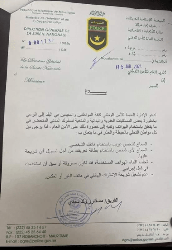 نبه الأمن الوطني المواطنين والمقيمين في البلد إلى الوعي بخطورة بعض المسلكيات التي وصفها بالعفوية والبدائية والمنافية للسلوك المدني المتحضر في ما يتعلق باستخدام الهواتف الخلوية، منبها إلى خطورة ذلك على الأمن العام.