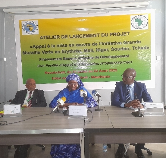 أشرفت وزيرة البيئة السيدة لاليا علي كمارا صباح اليوم بفندق نواكشوط أوتيل علي افتتاح أشغال ورشة إطلاق مشروع دعم تفعيل مبادرة السور الأخضر الكبير في أريتيريا ، مالي ، النيجر ، السودان ، اتشاد.