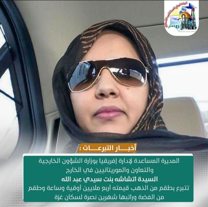 إن مبادرة كهذه تصدر من شخصية بهذه الأبعاد؛ لهي خير برهان لرفض الإنسانية جمعاء للعدوان العنجهي المتوحش الذي تشنه دولة الكيان الصهيوني على الشعب الفلسطيني من غزة إلى الضفة. كما أن انبراء السيدة اتشاشة بنت سيدي عبد الله ، هذه الشخصية النبيلة بكل ما تحمله الكلمة من دلالة ؛ لهو خير دليل على أن الإنسانية و العروبة و الإسلام صف و احد ضد الشر و الظلم و العدوانية على العكس مما يظنه و يتصوره اليهود الذين ما يزالون هم على سجيتهم في سفك دماء الأبرياء و قتلهم لقرض الظلم و القتل فقط.