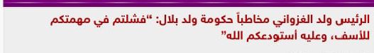 وخاطب ولد الغزواني أعضاء الحكومة قائلا إنه لا يمكن أن يتهمهم في نياتهم، أو يقول إن بعضهم قصد فعلا أن لا ينجز في المهام التي أوكلت إليه، ولكنه يؤكد لهم أن بعضهم لم يوفق في ذلك.