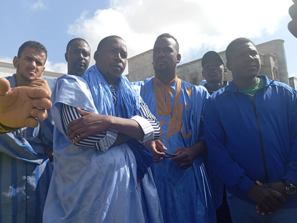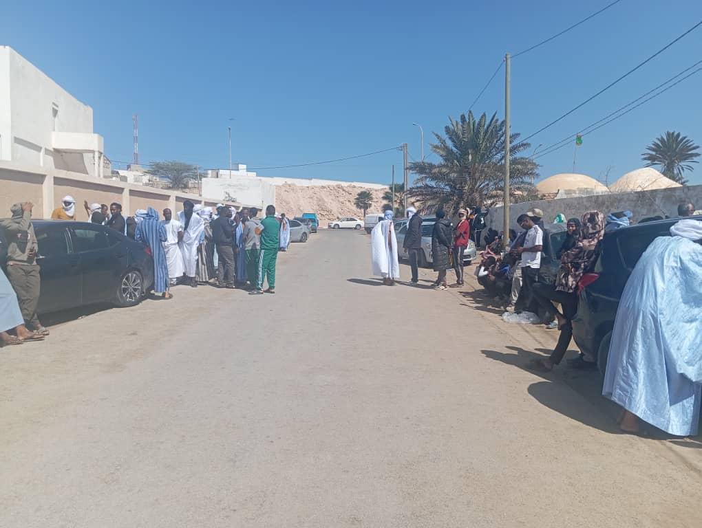 تجمهر أهالي بحارة اختفوا قبل يومين إثر تصادم باخرتين، وذلك أمام مقر خفر السواحل الموريتاني، للحصول على معلومات عن أبنائهم.