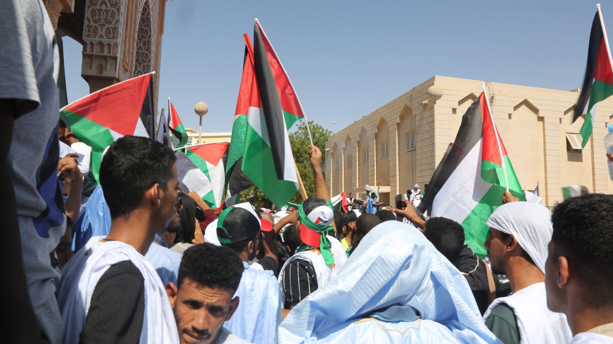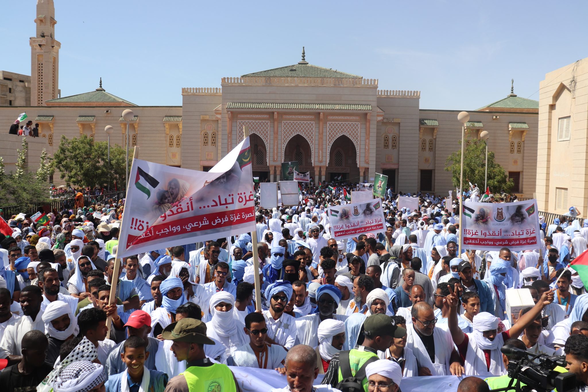 شهدت باحات المسجد الكبير في العاصمة نواكشوط (الجامع السعودي) وقفة احتجاجية غاضبة بعد صلاة الجمعة اليوم حيث رفع المشاركون شعارات ولا فتات تندد بالعدوان الاسرائيلي الغاشم ضد الشعب الفلسطيني في قطاع غزة ، وردد المشاركون شعارات وكلمات تفضح الجرائم الاسرائلية وتطالب المجتم الدولي بوضع حد لحالة الصمت الفاضحة ، حيث يتفرج العالم على إبادة جماعية غير مسبوقة في التاريخ يتعرض لها الشعب الفلسطيني في غزة