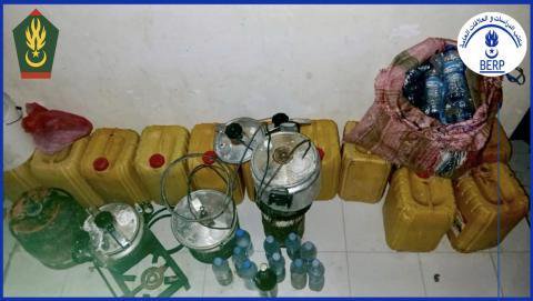 وضبطت الفرقة خلال المداهمة كميات من المادة المخدرة مخزنة في قنينات سعة 0.75 مللتر، إضافة إلى عشر حاويات سعة 20 لتر تحتوي على بقايا نفس المادة, وبعض المعدات التي تستخدم في صناعة المخدر، كما تم توقيف أربعة أشخاص داخل المنزل من جنسيات أجنبية.شش