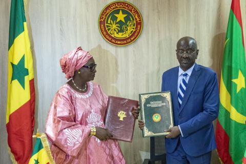 عن الجمهورية الإسلامية الموريتانية، صاحب المعالي السيد محمد سالم ولد مرزوك، وزير الشؤون الخارجية والتعاون الإفريقي والموريتانيين في الخارج عن جمهورية السنغال، صاحبة المعالي ياسين فال، وزيرة الاندماج الإفريقي والشؤون الخارجية.