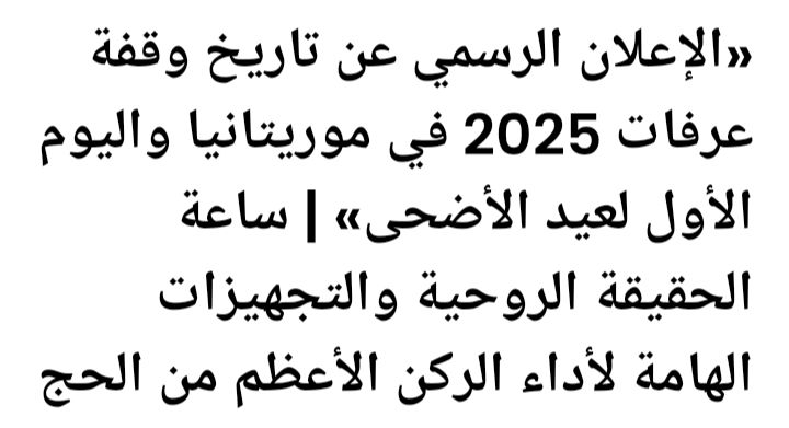 بعد تحديد يوم وقفة عرفات، يأتي عيد الأضحى الذي يصادف العاشر من شهر ذي الحجة، والذي سيكون في موريتانيا يوم السبت 7 يونيو 2025.