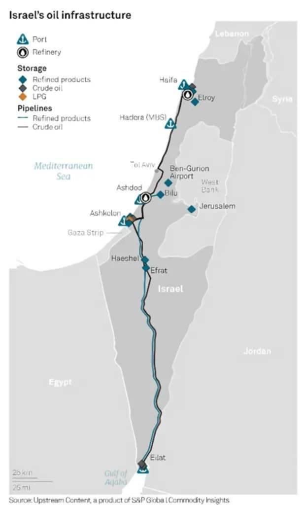 فقدت إسرائيل قدرتها على تكرير النفط إلى أجل غير مسمى، وقد تواجه مشاكل خطيرة في الوقود، وفقًا لتقرير “إس آند بي جلوبال كوموديتي إنسايتس”.