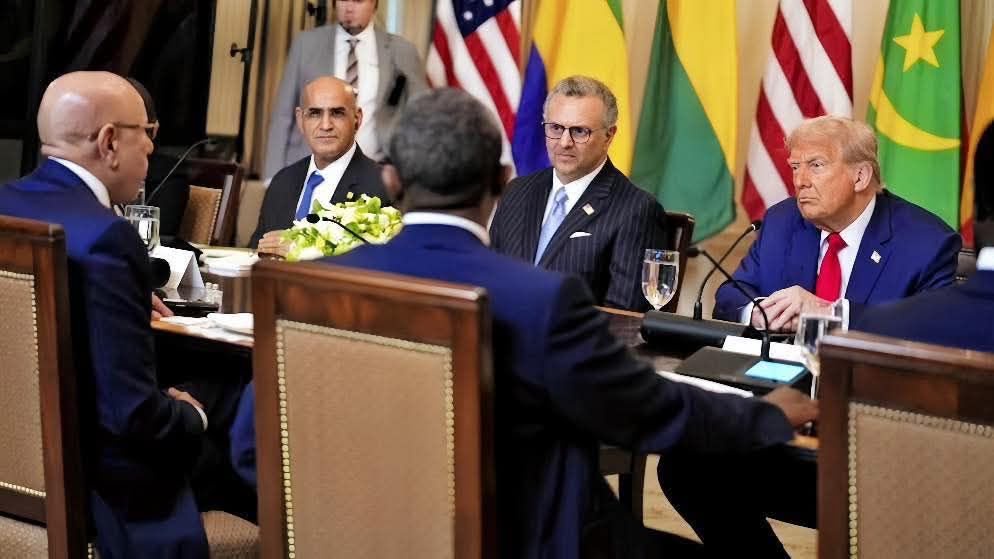 يطرح الكثيرون من مراقبي الشأن الموريتاني، تساؤلات حول خلفية جلوس مدير ديوان الرئيس محمد ولد الغزواني في الجانب الأمريكي، خلال اللقاء الذي جمع اترامب مع القادة الأفارقة. و يظهر الناني ولد اشروقه جالسا على نفس المنصة التي يوجد فيها الرئيس الأمريكي وأركان نظامه، لا يفصله بينه معه سوى شخص واحد، بينما جلس القادة الأفارقة في الطاولة المقابلة. ولا يعرف سبب مقنع لوجود دولة المدير في هذه الوضعية.
