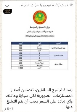 أصدرت وزارة النقل الموريتانية، اليوم، بياناً رسمياً أعلنت فيه عن تحديد أسعار المستلزمات والوثائق الضرورية لكل سيارة أو شاحنة، مؤكدة أن الأسعار الجديدة تهدف إلى حماية المواطنين من الاستغلال وضمان الشفافية في الخدمات المقدمة.
