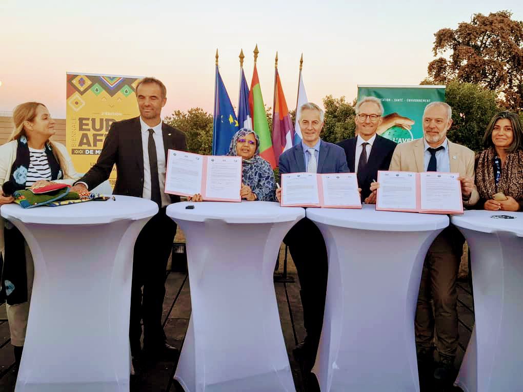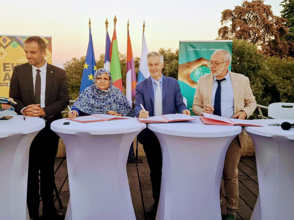 وقعت السيدة فاطمة بنت عبد المالك رئيسة جهة نواكشوط مساء اليوم الاثنين 6 أكتوبر 2025 اتفاقية منحة لتمويل مشروع جهة نواكشوط لتحسين الولوج للماء والصرف الصحي وذلك على هامش مشاركتها في النسخة الثانية من ” المنتدى الأوروبي الإفريقي الذي ينعقد كل سنيتين في مونبلييه la Biennale Euro-Africa de Montpellier. ويعتبر هذا المنتدى لقاء هاما لتعزيز التعاون والروابط بين المجموعات المحلية والشبكات في أوروبا وأفريقيا وذلك بحضور أكثر من 900 مشاركا.