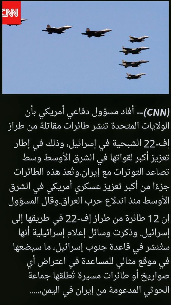 نشر مقاتلات ف22 في إسرائيل و سط التوتر مع إيران