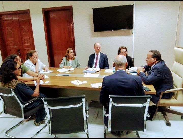 عقد الأمين العام لوزارة لوزارة الشؤون الاقتصادية والتنمية السيد / يعقوب ولد أحمد عيشه اليوم بمقر الوزارة، اجتماعا رفيع المستوى مع بعثة من المكتب الدولي لمكافحة المخدرات والجريمة ، وذلك لبحث سبل تعزيز التعاون الأمني والاستراتيجي المشترك.